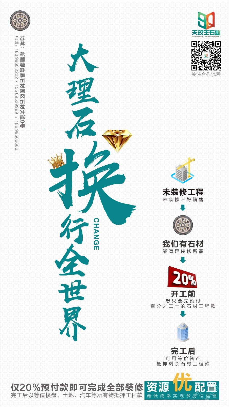新疆天玖王石業(yè)股份有限公司,坐落于鄯善石材工業(yè)園區(qū),注冊資金1億元,以礦山開發(fā)、石材加工與銷售、建筑裝飾材料銷售和貨物與技術(shù)進(jìn)出口貿(mào)易為主營業(yè)務(wù),是中國規(guī)模較大的大理石生產(chǎn)加工企業(yè)。