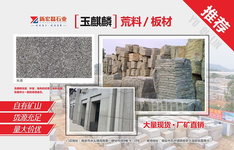新宏磊石業(yè)有限公司自有礦山,荒料堆場(chǎng)50余畝,有花崗巖和大理石加工廠,是集礦山開采、板材生產(chǎn)加工、銷售出口為一體的綜合性石材供應(yīng)商,在石材行業(yè)已經(jīng)擁有10年以上的生產(chǎn)與銷售經(jīng)驗(yàn)。