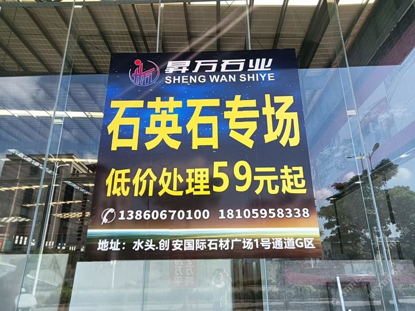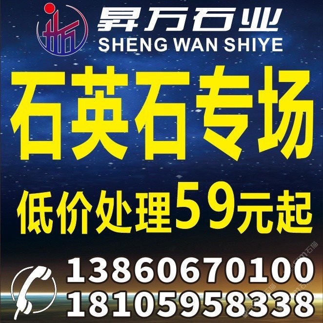 石英石專(zhuān)場(chǎng),庫(kù)存量2萬(wàn)平,驚爆價(jià)59元起!地址水頭鵬坤大板市場(chǎng)2號(hào)通道 聯(lián)系電話13860670100
