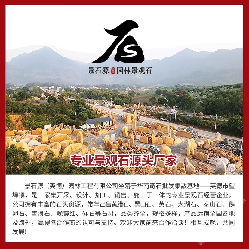 公司位于華南地區(qū)英石之鄉(xiāng)-清遠(yuǎn)英德市。本地盛產(chǎn)各種石材、擁有多年的石材銷售經(jīng)驗(yàn),自有實(shí)體石場。經(jīng)營黃蠟石、英德石、中國黑、太湖石、青花石、黑山石、鵝卵石、青花石、礫石、泰山石、雪浪石、晚霞紅等等多種石材原料??套质?、加工石、樹圍、景墻、地鋪、石槽石臺、水缽、石盆等多種異形加工產(chǎn)品