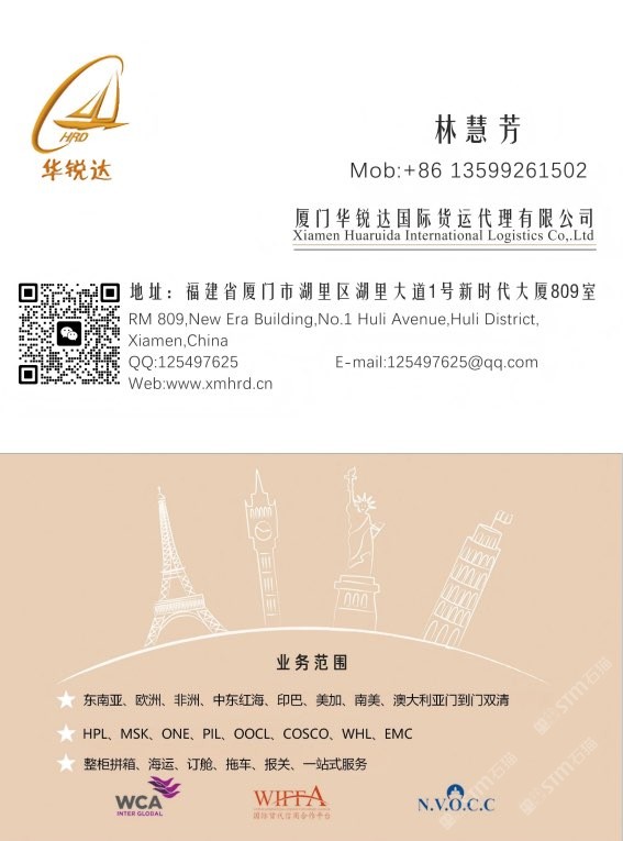 廈門華銳達(dá)(成立于2012年)是經(jīng)商務(wù)部批準(zhǔn)的一級國際貨運代理及無船承運人(MOC-NV12724),總部位于廈門自貿(mào)區(qū)新時代大廈。