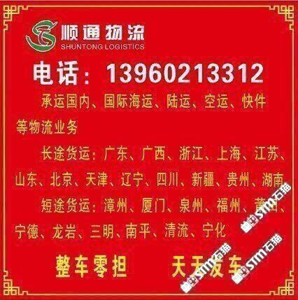 承運(yùn)國(guó)內(nèi)、國(guó)際海運(yùn)、陸運(yùn)、空運(yùn)、快件、等物流業(yè)務(wù) 長(zhǎng)途貨運(yùn):廣東、廣西、浙江、上海、江蘇、山東、北京、天津、遼寧、四川、新疆、貴州、湖南、 短途貨運(yùn):漳州、廈門、泉州、福州、莆田、寧德、龍巖、三明、南平、清流、寧化 銷售各種安溪鐵觀音茶葉、金駿眉、正山小種、綠茶、銷售熱線15392113999
