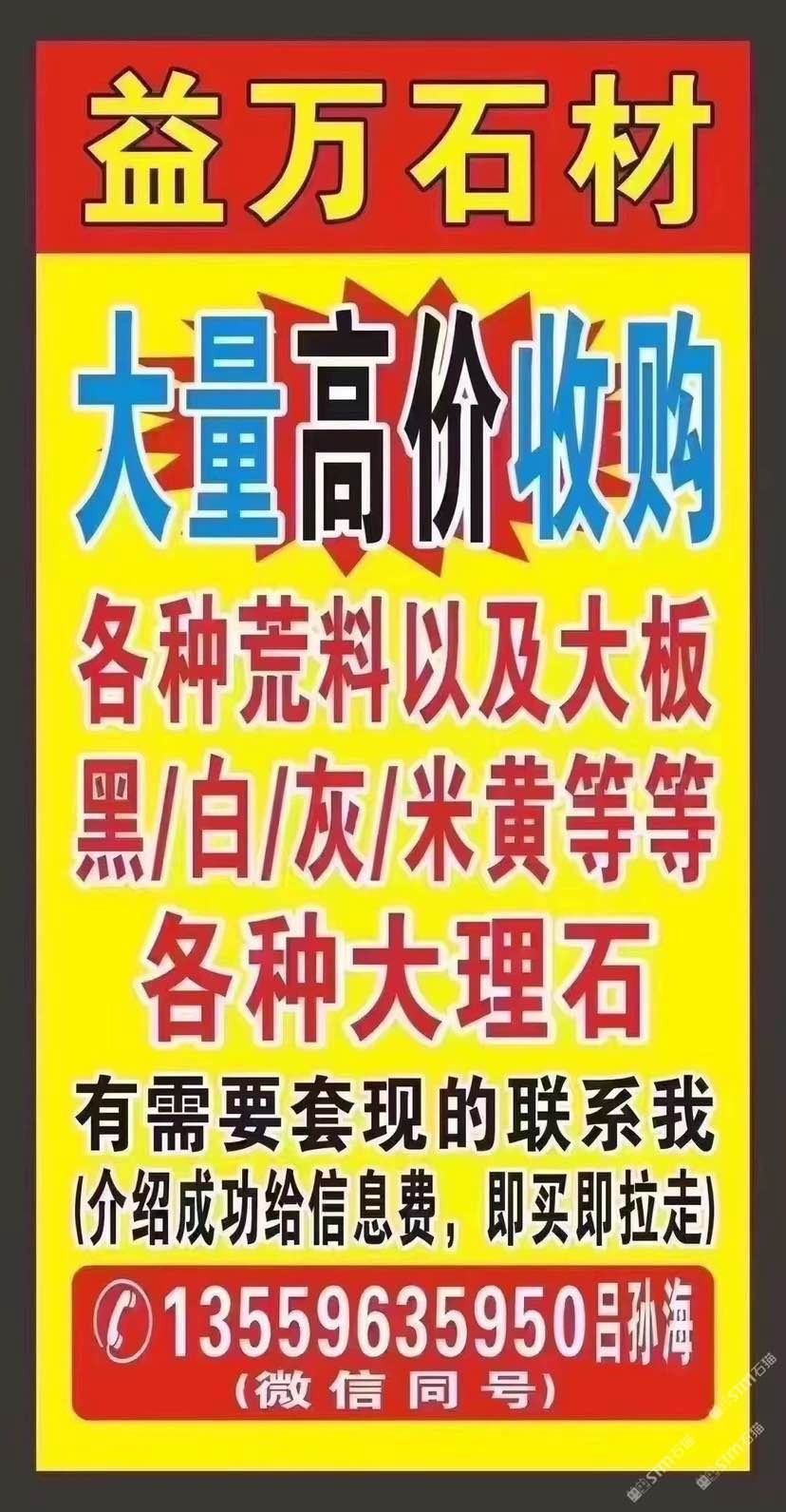 `【長期大量??高價求購】大板,荒料,多少量都可以;云多拉灰,奧特曼,白玉蘭,南斯拉夫白,溫德姆灰,星耀灰,保加利亞灰,奢石等各種大理石;需要:套現(xiàn)、清倉、換品種的速來,介紹成功給信息費(fèi),現(xiàn)收現(xiàn)拉!微信:13559635950呂孫海微信同號