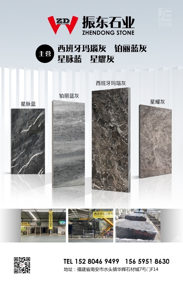 振東石業(yè) 聯(lián)系人:王然    156****8630 查看 152****9499 查看 主營(yíng)范圍: 大板批發(fā)、荒料、花崗巖加工、大理石加工、異型加工、 企業(yè)地址:福建泉州水頭鎮(zhèn)華輝石材城6號(hào)門(mén)E5振東石業(yè)
