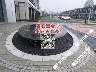 印度黑色石材戶外廣場噴水池印度黑金沙水池水景石材