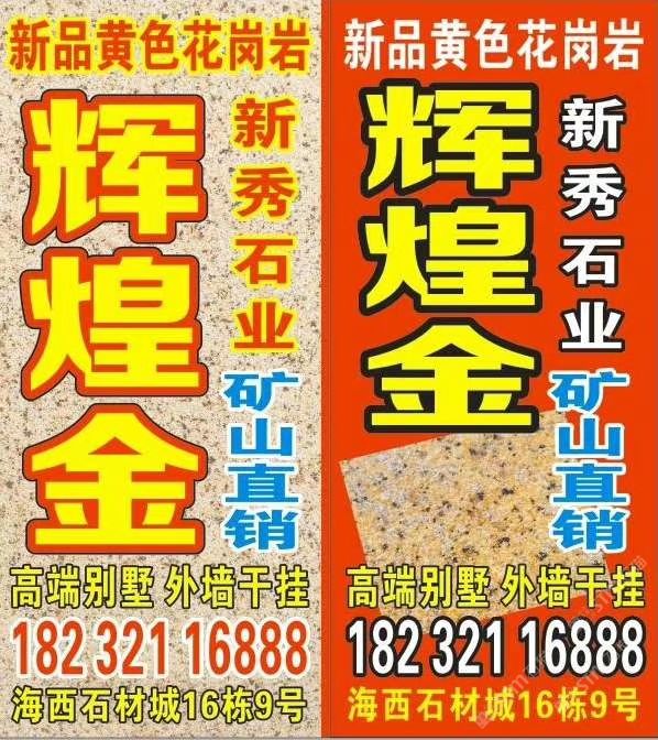 發(fā)布信息: 輝煌金/黃金麻,有做別墅外墻干掛的,我推薦一款黃色石材,非常的漂亮,高端大氣!