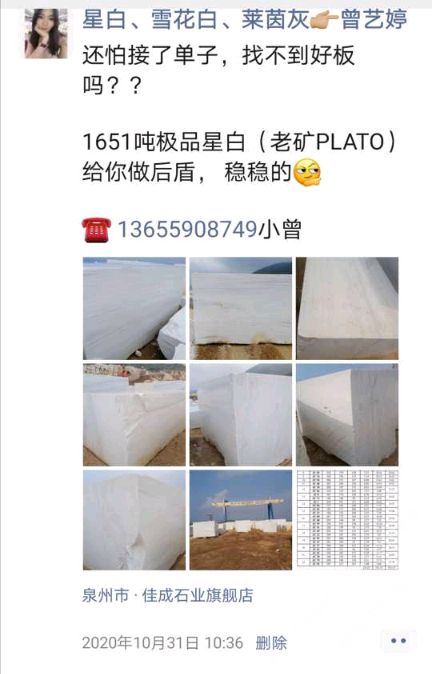 發(fā)布信息: 老礦PLATO星白 ,一千多噸 荒料可賣 ,可訂切 聯(lián)系電話:13655908749曾