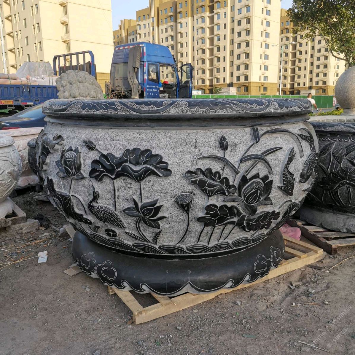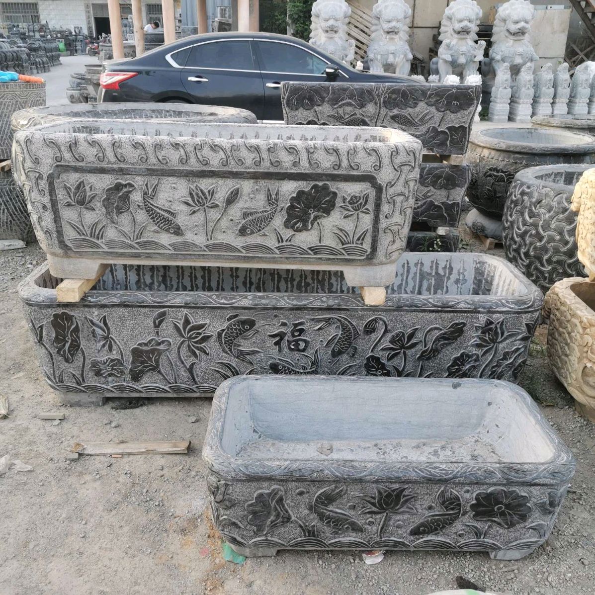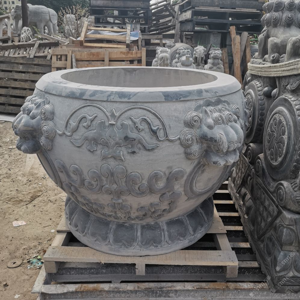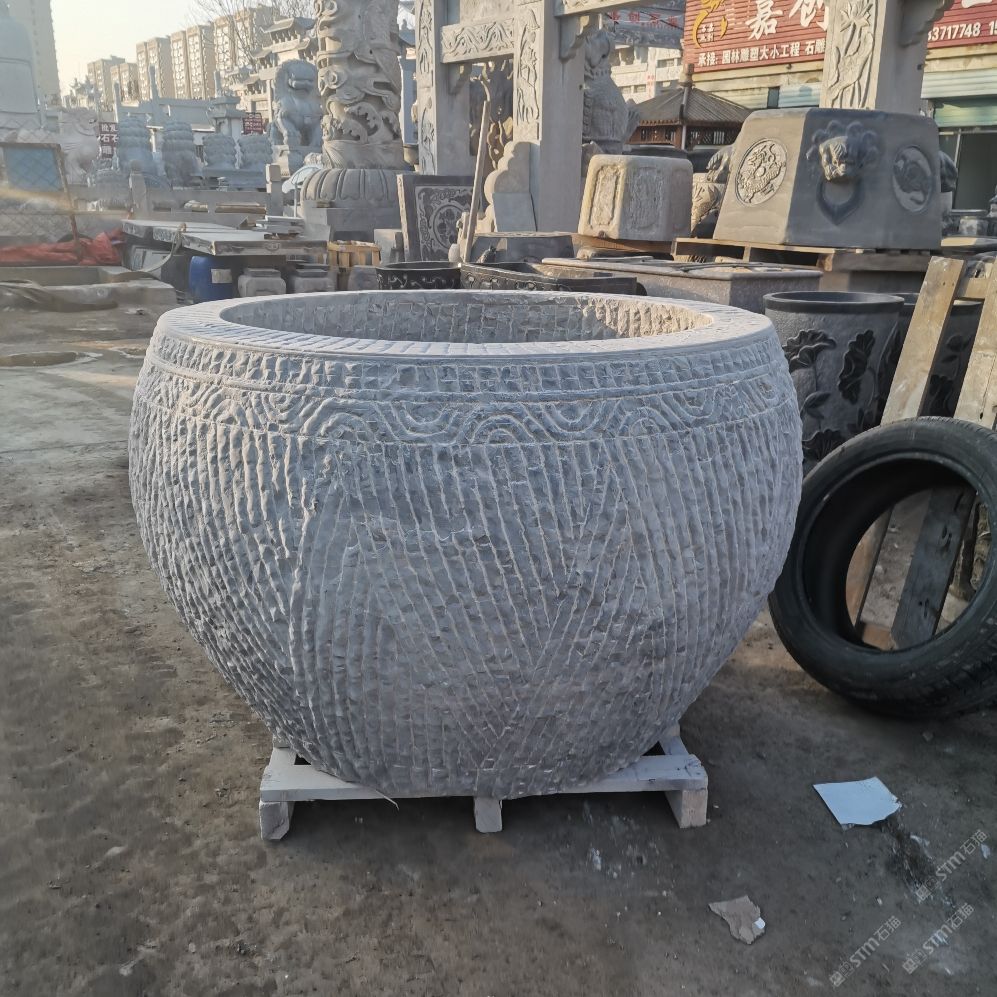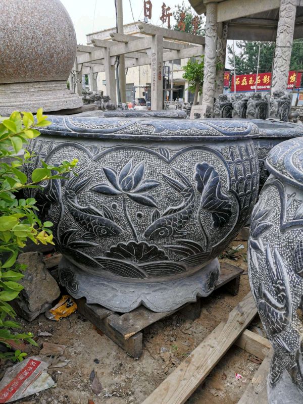 仿古青石魚缸聚寶盆,青石仿古石雕