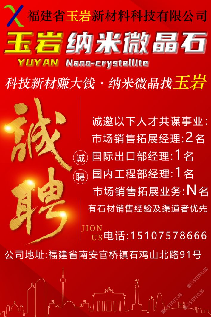 發(fā)布信息: 福建省玉巖新材料科技有限公司 科技新材賺大錢?納米微晶找“玉巖” 產(chǎn)品名稱:巖熔玉石 學(xué)術(shù)名稱:納米微晶石 產(chǎn)品特性: 一零:零輻射 二防:防滑;防污 三耐:耐磨;耐酸堿;耐高溫 四可:可透光;可回收;可熱彎;可加熱。 企業(yè)使命:推動(dòng)環(huán)保建材,共建美好未來。 企業(yè)愿景:融納米微晶石,塑匠心玉巖魂。 企業(yè)價(jià)值觀:感恩奉獻(xiàn),成人達(dá)己,科技創(chuàng)新,精益求精。 生產(chǎn)廠家: 福建省中郡莊藝新材料科技有限公司榮譽(yù)出品。