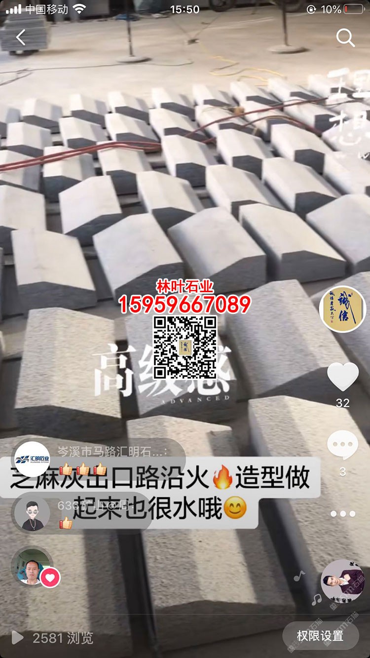 林葉石業(yè)長泰工廠(林總15959667089微信同號(hào))專業(yè)老礦芝麻黑與芝麻灰供應(yīng)商,專注于出口及高品質(zhì)工程國內(nèi)外園林景觀石材;主營:老礦芝麻黑墓碑石、正礦吳田山G654窗臺(tái)板、G654芝麻黑牛鼻子、芝麻黑石材游泳池蓋板、老礦芝麻黑出口高品質(zhì)工程板、老礦654小方塊馬蹄石、芝麻灰G655路沿石、深灰麻石材、中灰麻石材、深灰色花崗巖、黑色麻石等光面、燒面、荔枝面、墓碑石材、地鋪石材、園林景觀工程、路沿石材等;林葉石業(yè)寧德工廠(葉總18050650127微信同號(hào))專業(yè)新礦芝麻黑寧德小藍(lán)寶,廠礦一體,體格優(yōu)惠,真誠希望您的光臨與合作?。暶魃蟼鳟a(chǎn)品圖片均是本廠加工生產(chǎn))