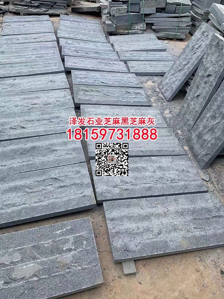 老礦芝麻黑g654石材魚(yú)鱗面外墻干掛文化石背景墻