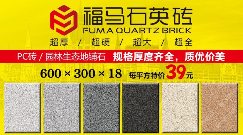 發(fā)布信息: 福馬石英磚? 品質(zhì)承諾:無(wú)色差、無(wú)裂痕、不褪色、不變形、不吸水、不膨脹。 適合用于室內(nèi)外,景觀,庭院、圍墻,地鋪,干掛外墻。歡迎新老客戶(hù)來(lái)選購(gòu),品種多,規(guī)格全