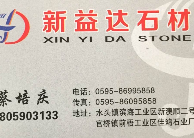 新益達(dá)石材 聯(lián)系人:蔡先生    137****1866 查看 手機(jī)號(hào)碼:無 主營(yíng)范圍: 大板批發(fā)、 企業(yè)地址:福建泉州新奧順2號(hào)門