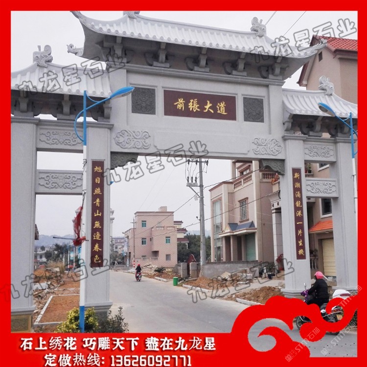 發(fā)布信息: 農(nóng)村村口牌坊 石牌坊生產(chǎn)廠家——九龍星石業(yè)。 農(nóng)村村口牌坊制作內(nèi)容豐富,雕刻精美,每一座石牌坊都瑰麗華美,都是經(jīng)過石牌坊雕刻廠家精雕細(xì)刻加工而成的。 從農(nóng)村村口牌坊設(shè)計(jì)來看,規(guī)格主要可以分為單門牌坊、三門牌坊、五門牌坊等,在樣式上可以考慮沖天式牌坊或者不出頭式牌坊。此外石牌坊本身的雕刻圖案選擇也非常多,根據(jù)當(dāng)?shù)氐娘L(fēng)土人情以及文化特色等,在牌坊的設(shè)計(jì)上都會(huì)有很大的不同,考慮村莊石牌坊多少錢,也會(huì)考慮到牌坊本身的工藝設(shè)計(jì)以及雕刻的精細(xì)度情況,做工越是精致牌坊的價(jià)格越高,做工要是普通的話相對(duì)來說也就不需要那么多錢。