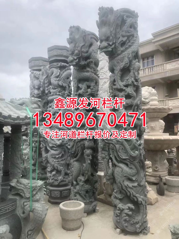 商圈 > 欄桿 > 龍鳳柱子芝麻黑芝麻灰龍鳳圓柱文化柱子寺廟盤龍柱雕塑