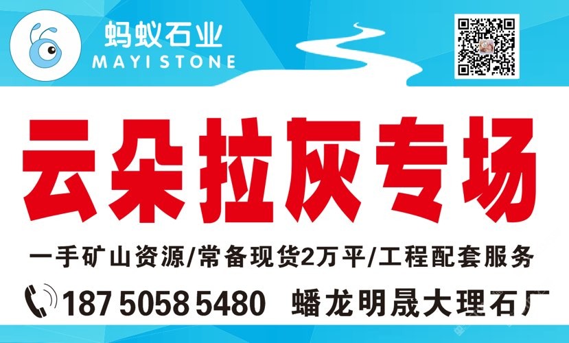 螞蟻石材 聯(lián)系人:呂    138****4435 查看 138****4435 查看 主營范圍: 大板批發(fā)、荒料、大理石加工、礦山、石材外貿(mào)、異型加工、 企業(yè)地址:福建泉州水頭鎮(zhèn)蟠龍明晟大理