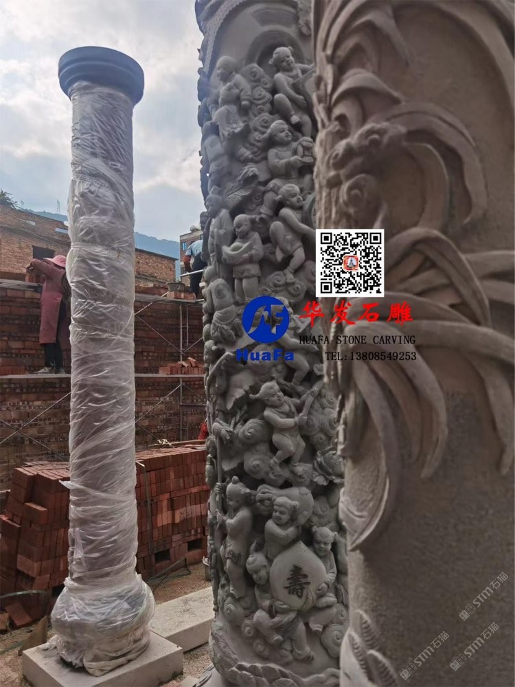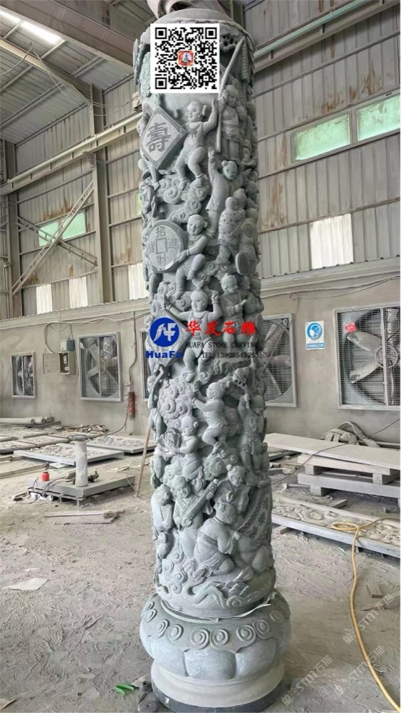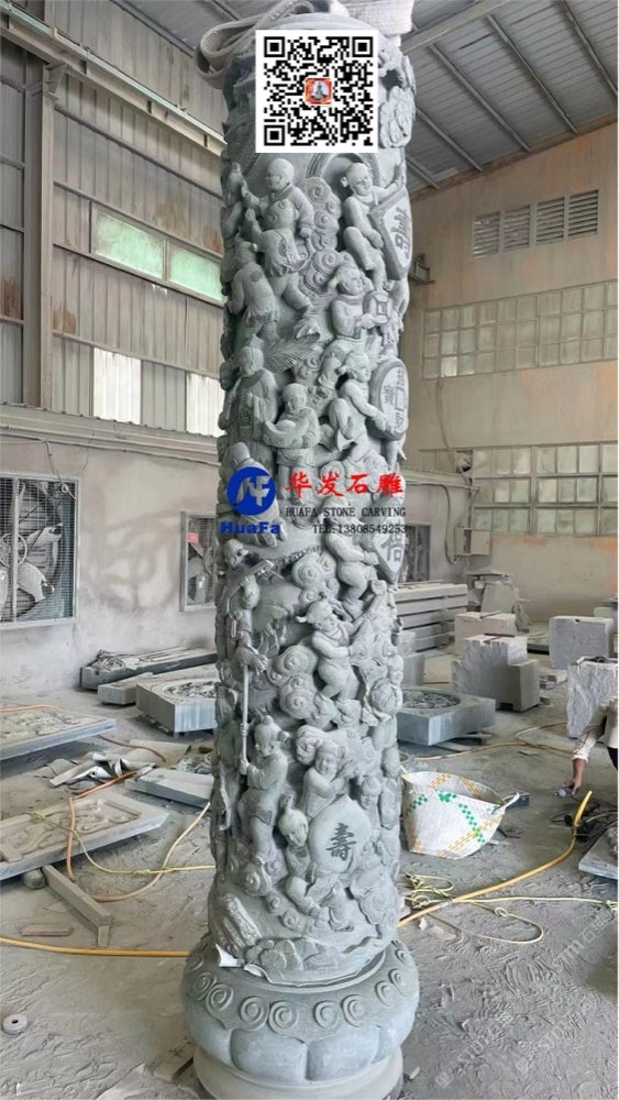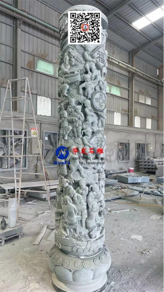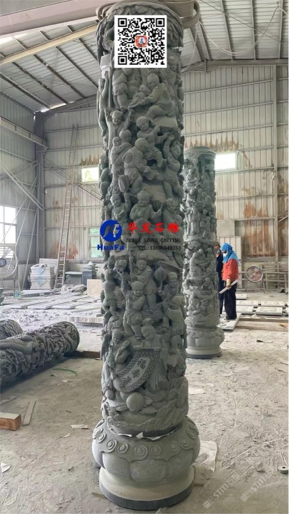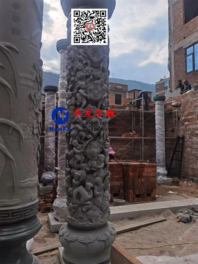 祠堂石雕百子文化柱