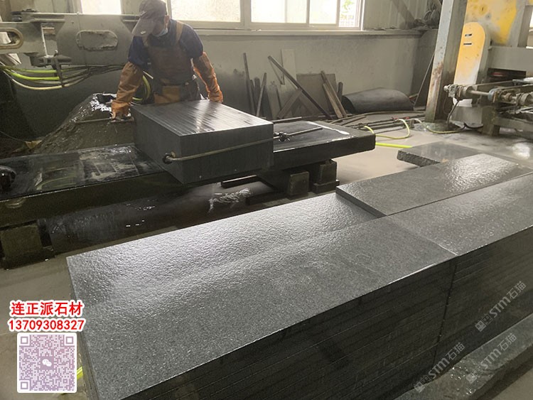 柬埔寨黑中細花機切面毛板新礦654芝麻黑石材工程板