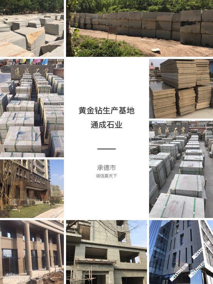 發(fā)布信息: 我公司以礦山開采石材加工為一體主要經(jīng)營:黃金鉆、電解黃金鉆、寶金石、皇室珍珠、沙漠金棕、承德綠、沙漠綠洲、藍(lán)豹、皇室啡、燕山綠、荔枝面、火燒板、光板、機(jī)切面、蘑菇石、盲道石 異型加工等二十多種石材產(chǎn)品。承接園林、廣場、外墻干掛等各種工程應(yīng)用板材。我公司奉行:以質(zhì)量求生存、以信譽(yù)求發(fā)展的原則,誠石守信、主客雙贏、同等的質(zhì)量比價(jià)格、同等的價(jià)格比質(zhì)量的經(jīng)營理念。誠迎各界商客朋友來我公司參觀指導(dǎo)洽談業(yè)務(wù)!訂購熱線:? 13832461168 13653249345(微信同號(hào))
