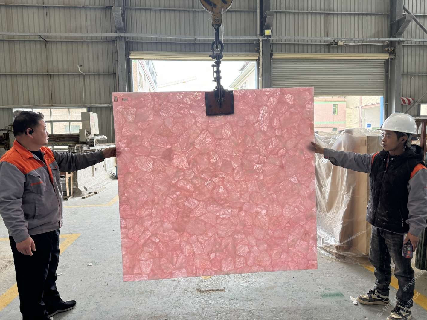 天然粉水晶大板,透光石材,半寶石板材,支持定制