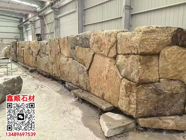 黃銹石壘墻石亂形石板不規(guī)則壘墻護(hù)坡毛石鄉(xiāng)村砌墻石材