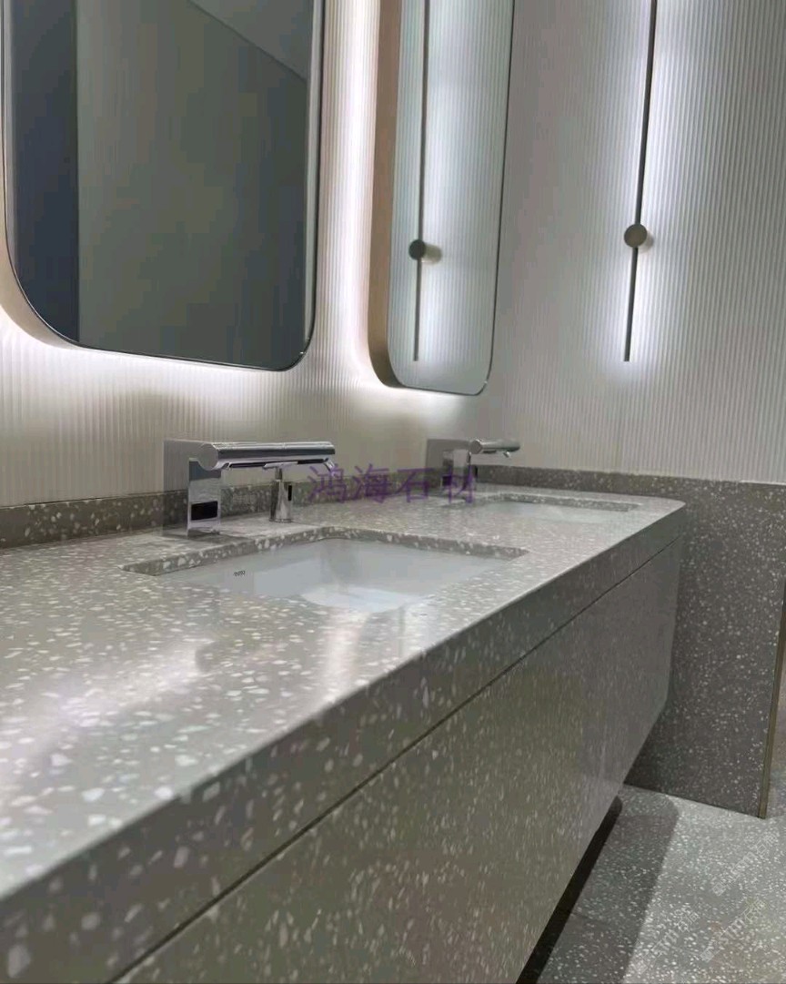 發(fā)布信息: ?? 公共衛(wèi)生間的“門(mén)面擔(dān)當(dāng)”!鴻海水磨石洗手臺(tái)實(shí)拍來(lái)襲~ 灰調(diào)搭配細(xì)膩石粒,燈光一打,氛圍感直接拉滿! 一體無(wú)縫工藝,好打理不藏污,商場(chǎng)酒店裝它,檔次瞬間提升?? 認(rèn)準(zhǔn)【鴻海石材】,品質(zhì)看得見(jiàn)!