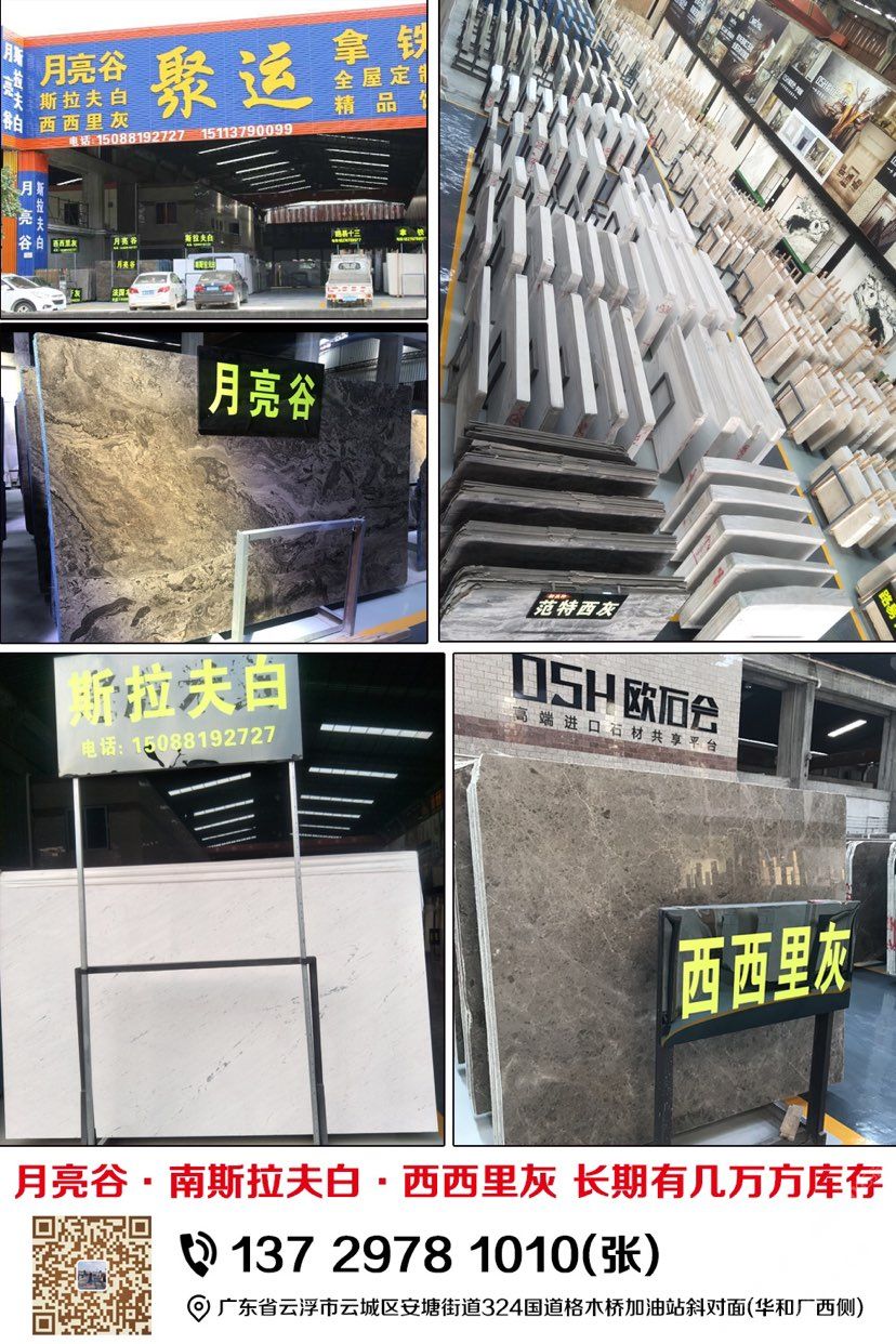廣聚石材 聯(lián)系人:張小姐    137****1010 查看 137****1010 查看 主營范圍: 大板批發(fā)、荒料、礦山、其他、 企業(yè)地址:廣東云浮初城北一路中海油加油站斜對(duì)面