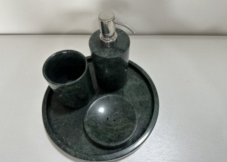 大花綠石材衛(wèi)浴四件套 石材香皂盒淋浴擺件托盤(pán)