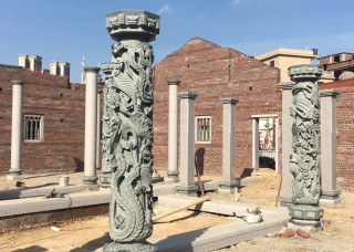四川青石龍柱萬(wàn)源青柱墩?qǐng)A柱欄桿寺廟古建青砂巖雕刻